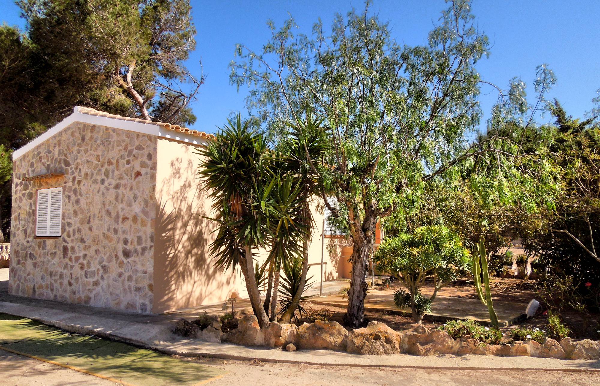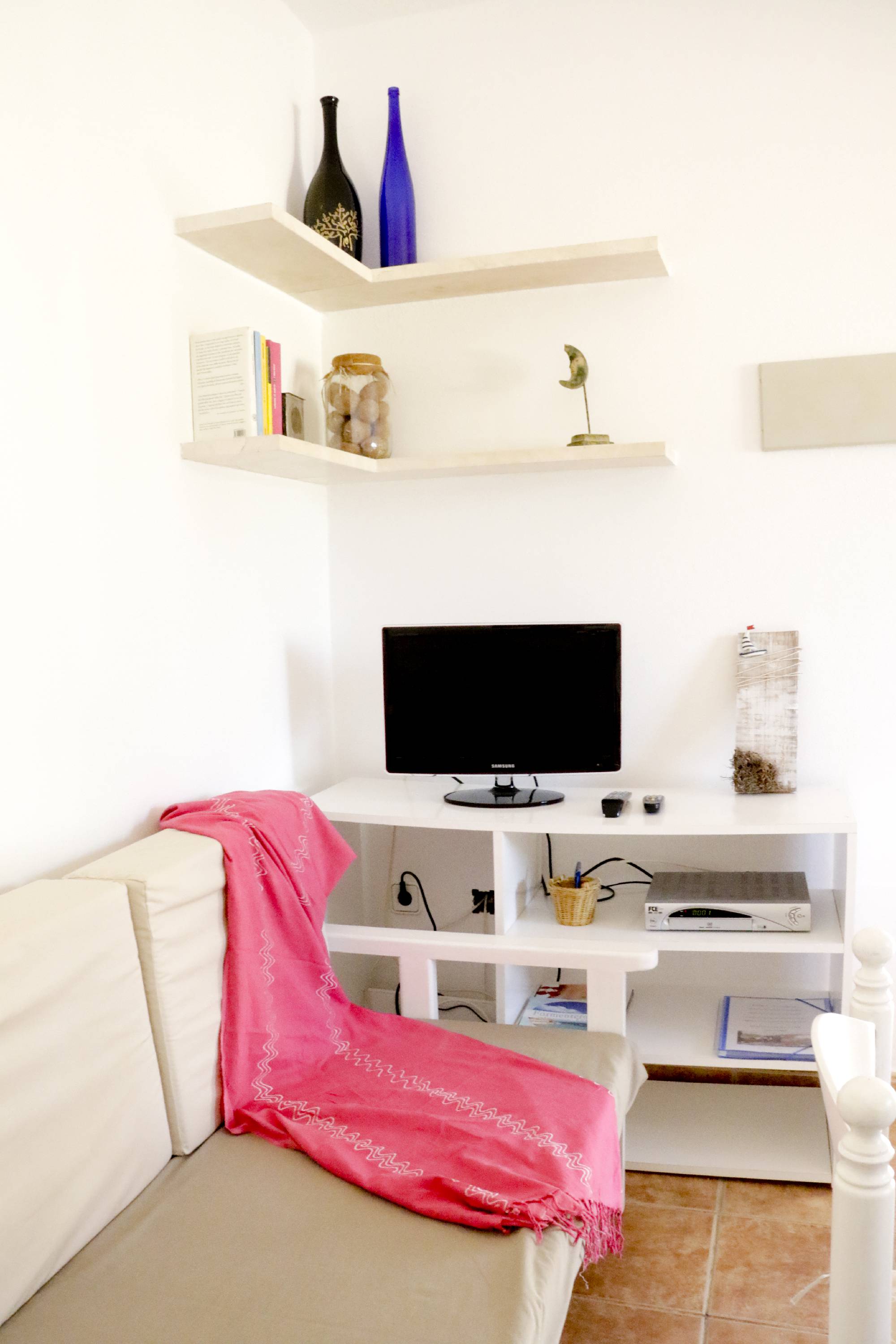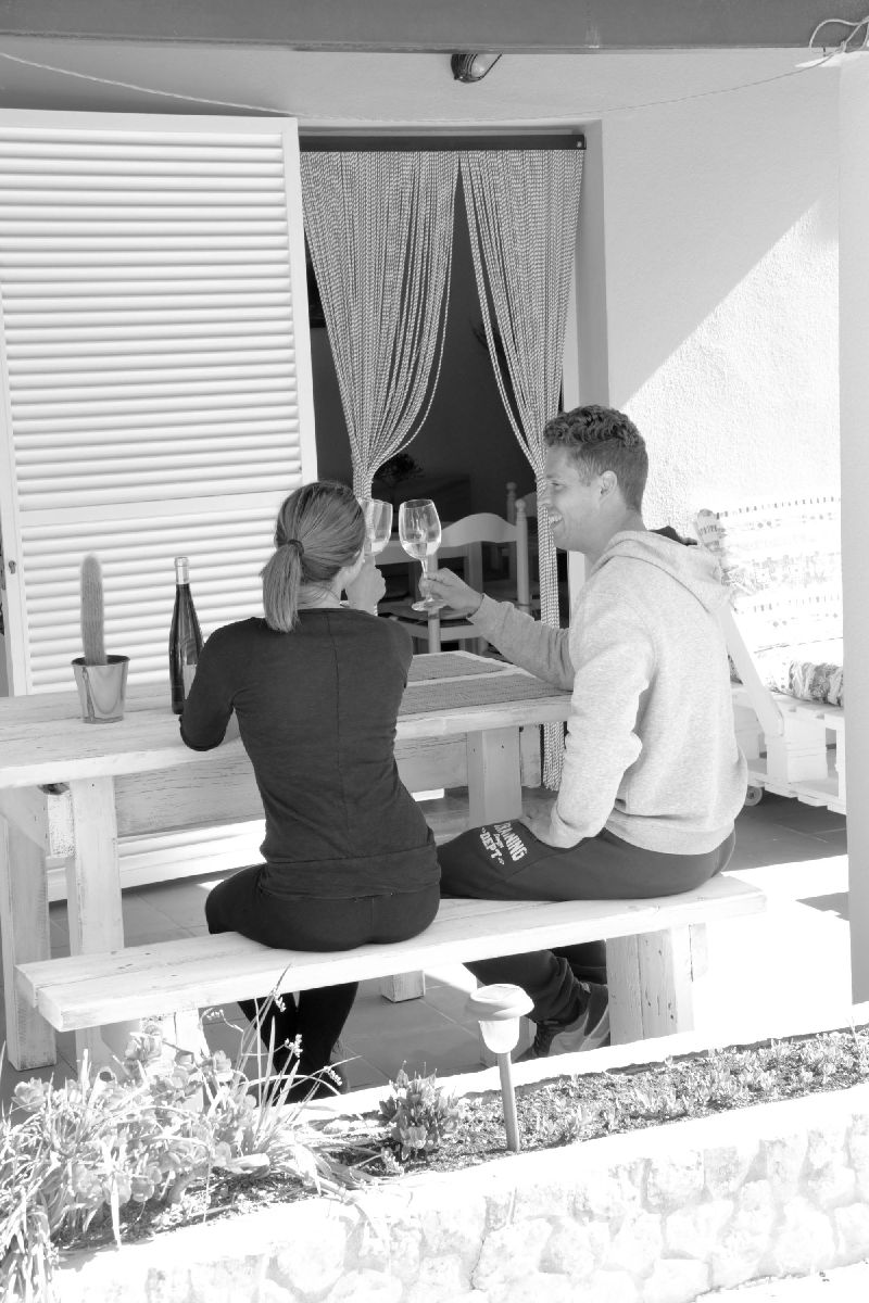 -Descripción: El apartamento se encuentra a 300m de la playa mitjorn, cerca del Kiosco Lucky! El apartamento esta dentro de un recinto privado, rodeado de naturaleza y un bonito jardín, una zona tranquila, perfecta para pasar unas vacaciones relajantes. Bonito, sencillo y practico apartamento, con un dormitorio con 2 camas individuales(opción de una cama matrimonial), baño, salon (2 sofas-camas),con cocina barra americana y una estupenda terraza (chill-out) con buenas vistas. El alojamiento es bueno para parejas y familias (con hijos).